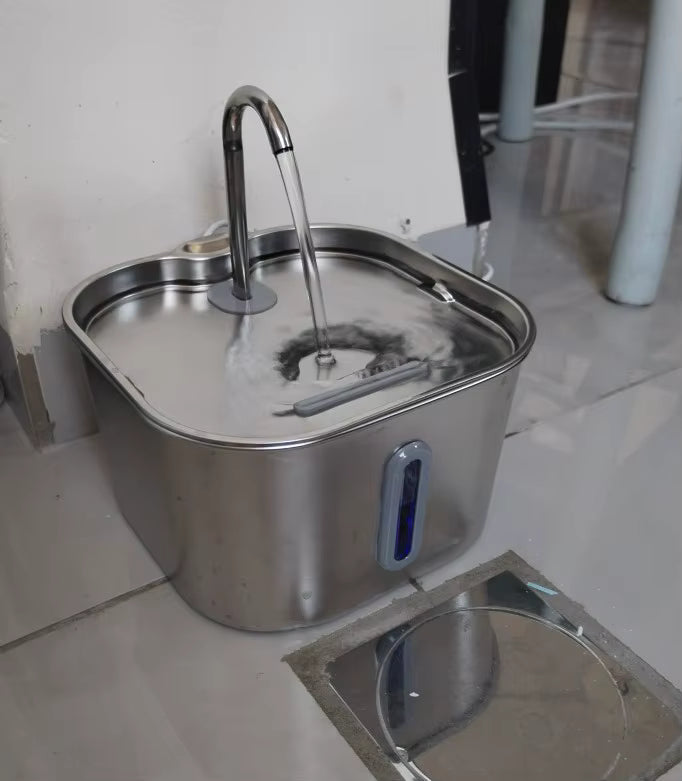 O funcionamento é simples: quando uma pessoa ou animal se aproxima, o bebedouro ativa-se automaticamente. Após a saída, o fluxo de água desliga-se de forma automática 30 segundos depois, garantindo eficiência e conforto.